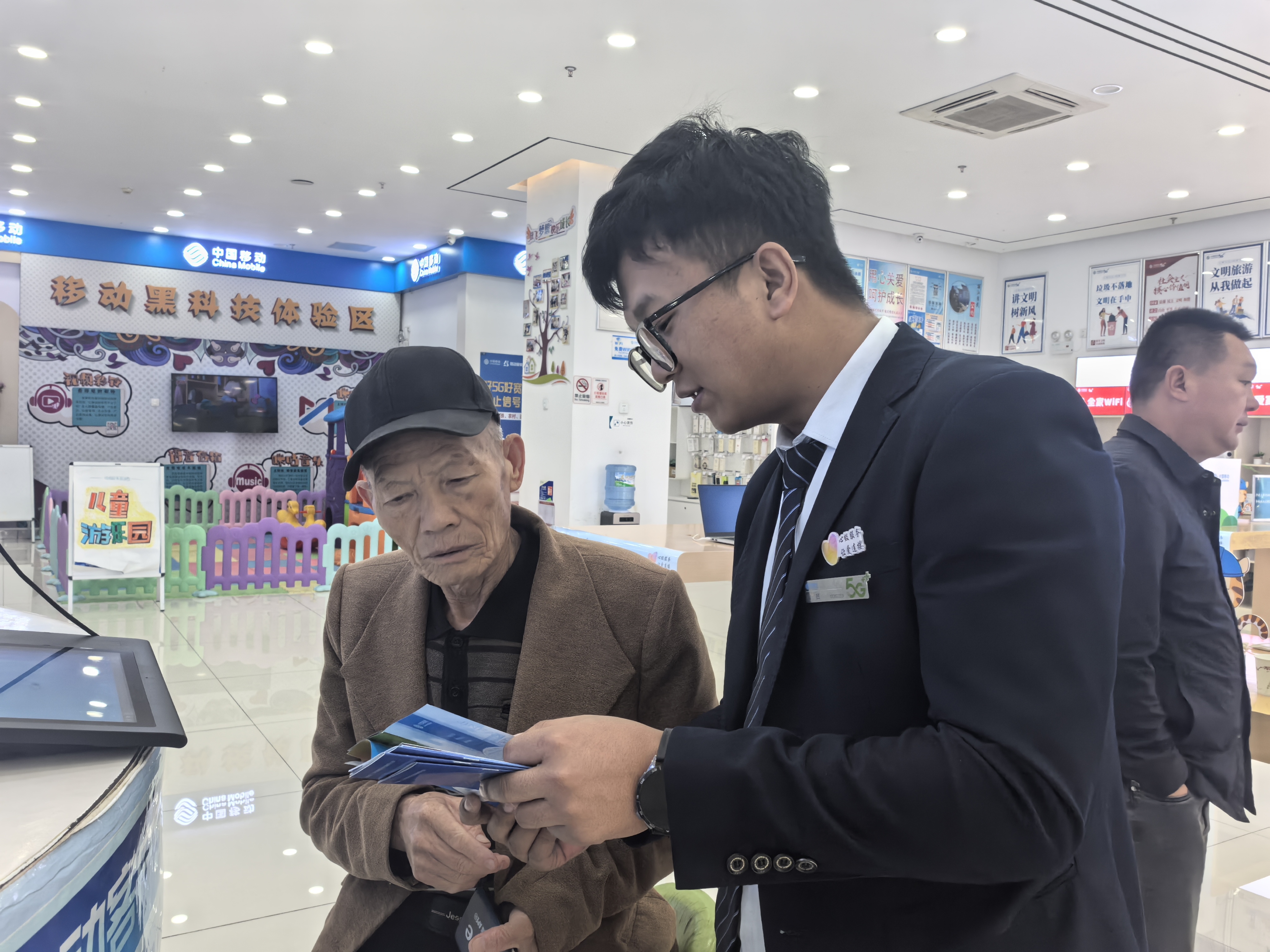 9月11日,在中国移动营业大厅,市民正在办理业务。(秦文静 摄)