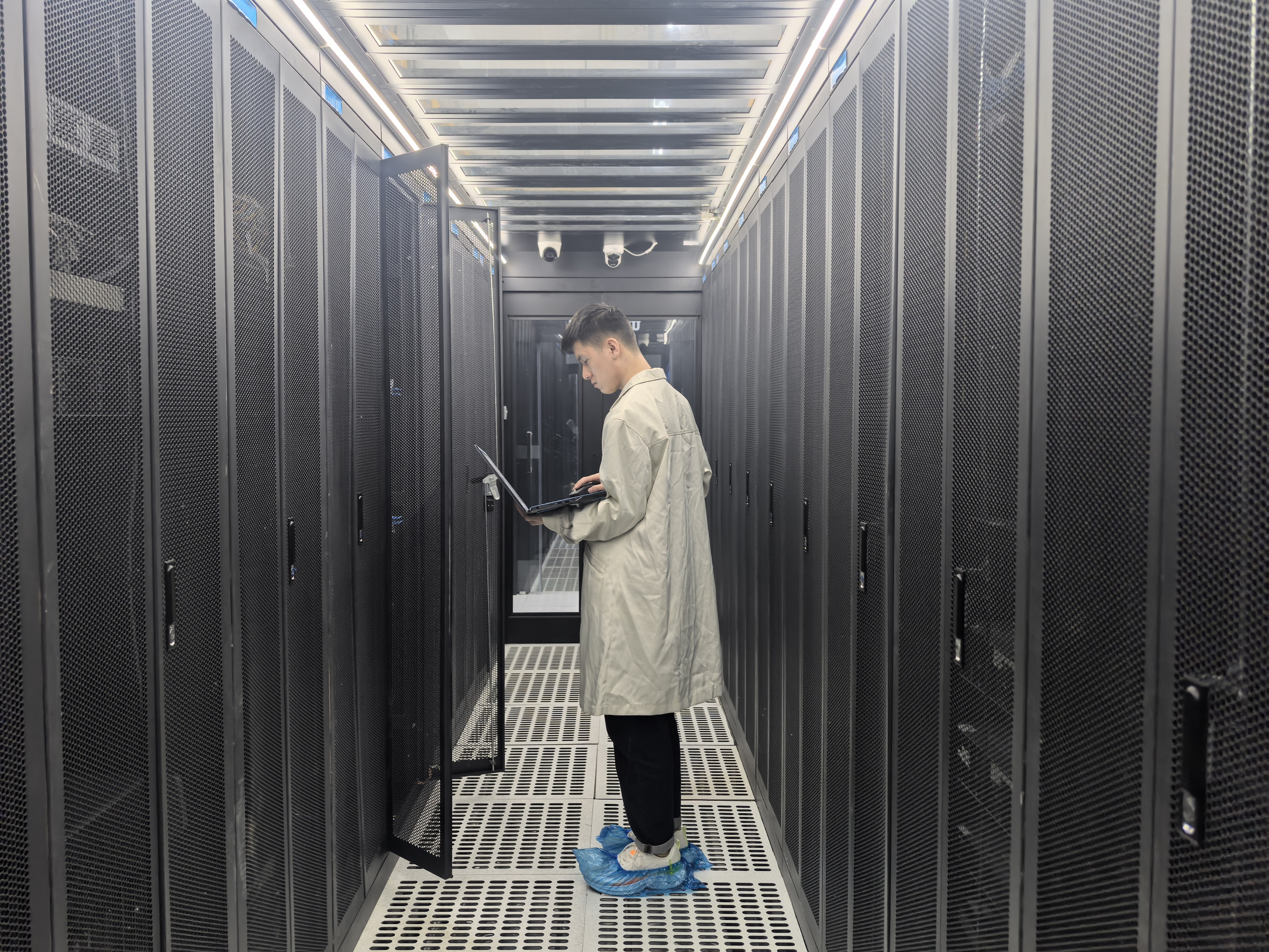 技术人员在机房开展例行检查工作。(秦文静 摄)