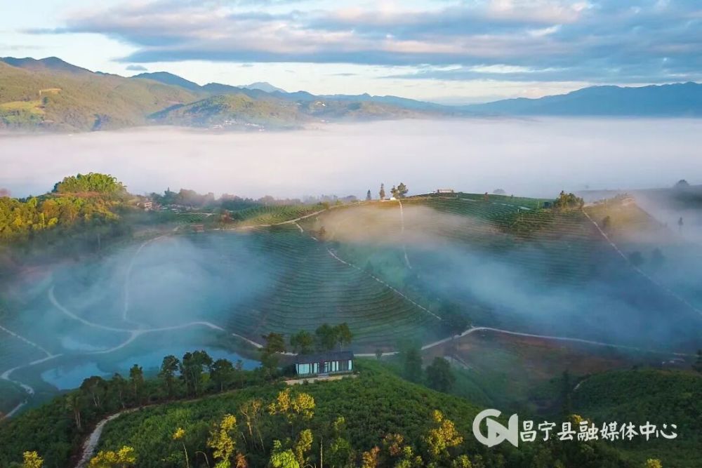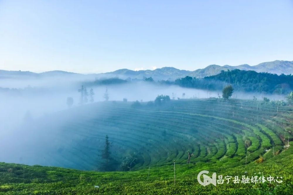 当第一缕阳光划破天际,金色的光辉洒落在连绵起伏的茶山上,