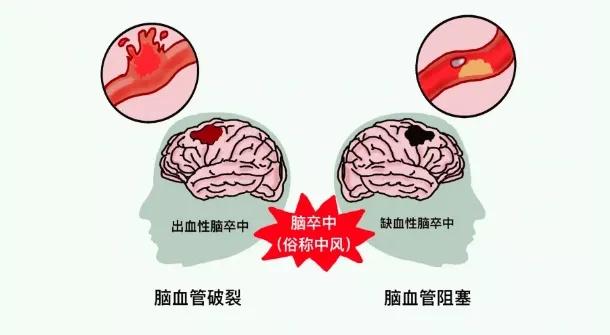 脑卒中分为脑梗死(缺血性卒中)和脑出血(出血性卒中)两大类。两者的发病时间通常不同:脑梗死常在睡眠期间发作,患者发病后常有一侧肢体无力或麻木,一侧面部麻木或口角歪斜;说话不清或理解语言困难,双眼向一侧凝视;单眼或者双眼视力丧失或者模糊,意识障碍或者抽搐;脑出血则常于活动、劳累、用力或精神受刺激时发生,可出现剧烈头痛、呕吐症状,甚至出现嗜睡、昏迷、呼吸心跳骤停等症状。