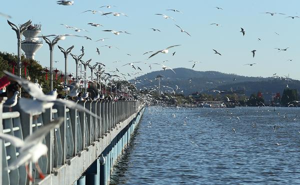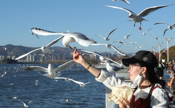 大雪节气,春城昆明气候温暖 虽没有雪花晶莹剔透的色彩 但有滇池的湛蓝、湿地的碧绿、冬阳的暖桔 还有红嘴鸥灵动的乳白…… 春城冬日“大雪”日 鸥舞滇池人尽欢 滇池草海大坝沿线 大批越冬红嘴鸥仍在水面休憩游弋 或欢快地追逐着快艇,或在空中盘旋飞舞 犹如漫天飞雪,美不胜收 市民游人观鸥喂鸥 与红嘴鸥和谐相处 呈现鸥舞滇池人尽欢的美丽景致 春城冬日“大雪”日 鸥舞滇池人尽欢 为深入打好蓝天保卫战 昆明市多措并举 深入开展清洁柴油车(机)行动 加大清洁能源汽车推广力度 持续开展工业废气排放治理 制定整治方案,定期开展综合整治行动 全面推行绿色施工 加强施工场地、堆场、裸露地面精细化扬尘管控 强化渣土运输管理 让“昆明蓝”成为春城靓丽底色