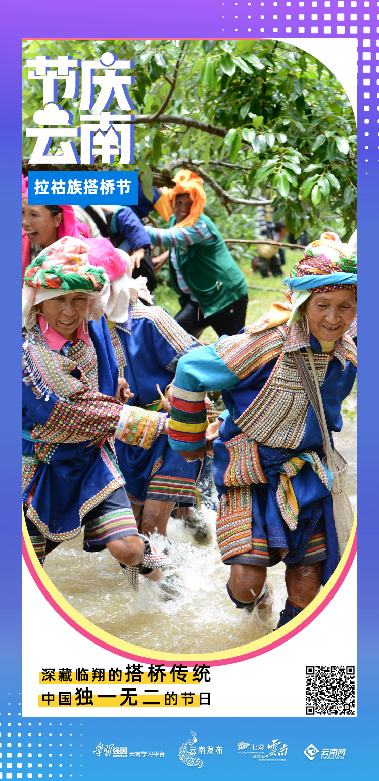 每年农历四月的第一个属龙日,是他们一年一度的传统节日搭桥节,拉祜族搭桥节是云南省乃至全国独一无二的节日,被列入云南省第四批省级非物质文化遗产名录。