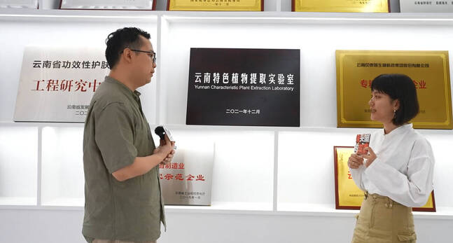 作为一家根植云南的本土企业,贝泰妮产品研发、生产主要立足于云南,总部设立在昆明科医路。吴玲介绍,在研发方面,贝泰妮集团在上海设有研发中心,在昆明则主要依托云南特色植物提取实验室。实验室由贝泰妮集团牵头成立,云南省药物研究所、云南大学、云南农业大学参与建设,是全国第一家特色植物提取实验室,下设云南特色植物研发中心、功效化妆品研发中心、功能性食品研发中心、植物药研发中心等多中心平台,致力于持续开发高附加值的云南特色植物健康产品。