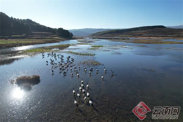 巧家:马树湿地越冬黑颈鹤达182只 张顺富 摄