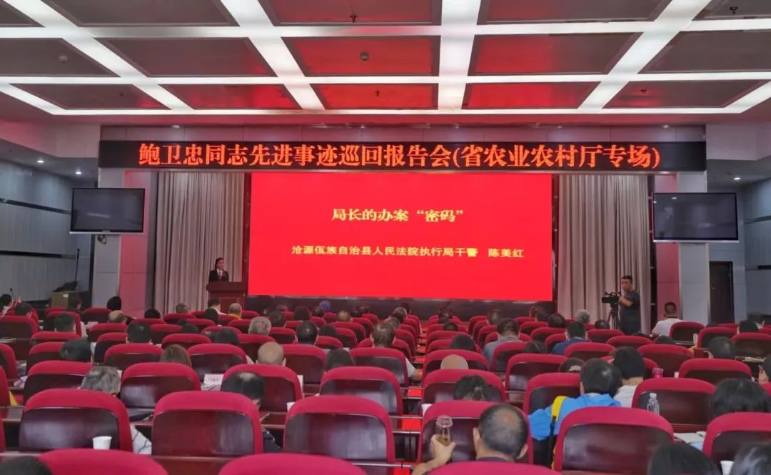 在一场场报告会现场,沧源县人民法院党组书记、院长吕丹,鲍卫忠同志妻子周红,沧源县人民法院干警陈美红,临沧市文化传媒集团记者毕昱4位报告团成员依次上台。通过讲述一个个真实而生动的故事,从不同侧面、不同角度深情追忆鲍卫忠同志扎根边疆基层法院,奋斗在执法办案、服务群众最前沿的英雄事迹,全方位呈现出一位对党忠诚、一心为民、爱岗敬业、勇担使命的优秀共产党员形象。