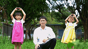 他带着孩子们一起合唱并录制