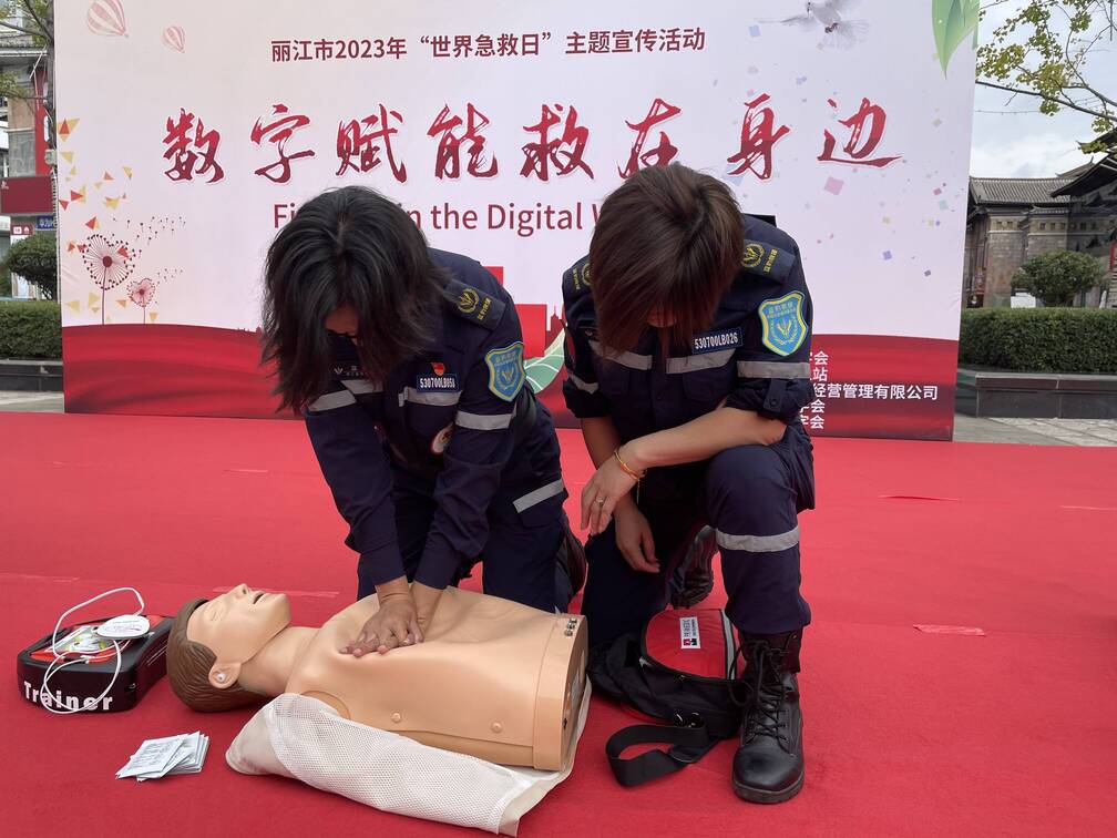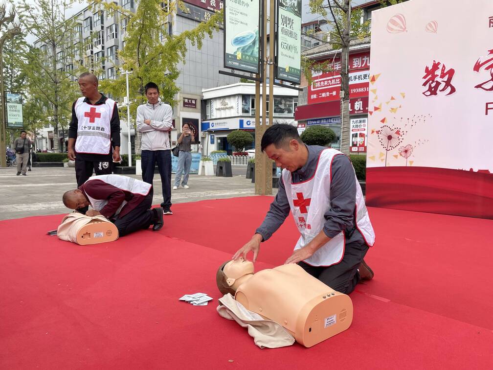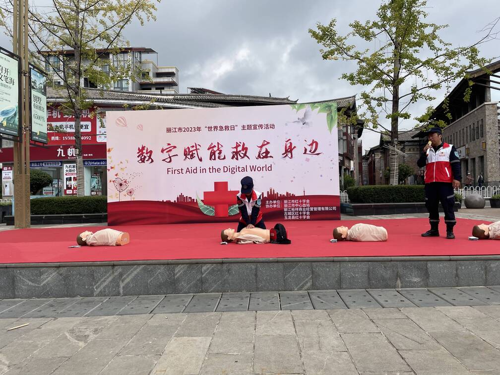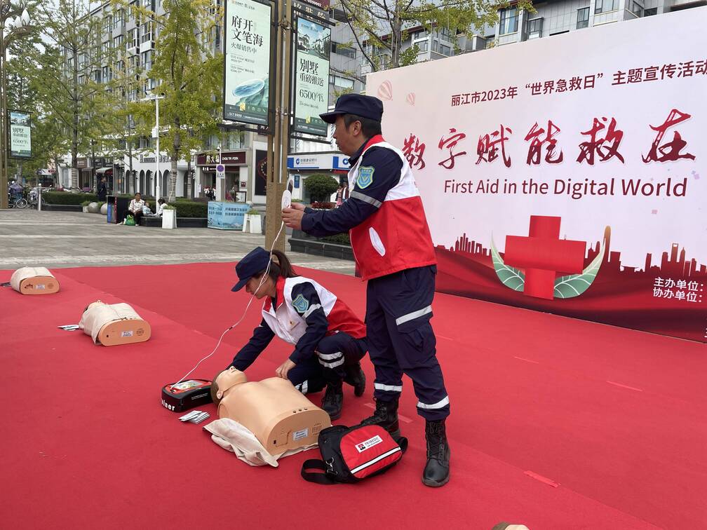 今年9月9日是第24个“世界急救日”,按照云南省红十字会、丽江市创建全国文明城市指挥部办公室的相关要求,丽江市红十字会开展了系列宣传活动。今天上午,丽江市红十字会联合丽江市中心血站、古城区红十字会、玉龙县红十字会以及丽江市红十字会应急救护、蓝豹应急救援、山地救援、水上救援、心理救援5支志愿服务队伍,在祥和商业广场开展“数字赋能救在身边”为主题的急救知识科普活动。