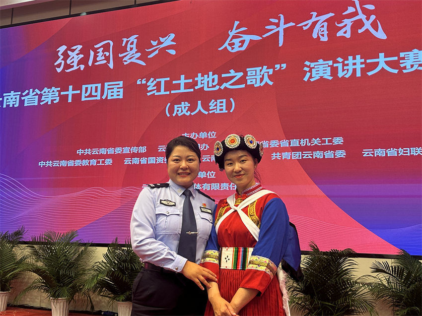 “今天,代表丽江站在云南省第十四届‘红土地之歌’演讲大赛决赛舞台,把‘巍巍玉龙雪山,脉脉金沙江水’哺育着的‘丽江政法铁军’‘披星戴月’的丽江人民呈现在全省人民的面前,我倍感荣幸。站在红土地上,动情讲述丽江的红色故事,讲述着扎根边疆而心向北京的动人故事,讲述着身边千千万万战友的平凡故事,我的心中充满敬意。同时,更加坚定了我扎根边疆,做忠诚践行‘训词精神’,维护社会公平正义、守护人民安宁祥和的人民警察的信念。”周筠雨说。