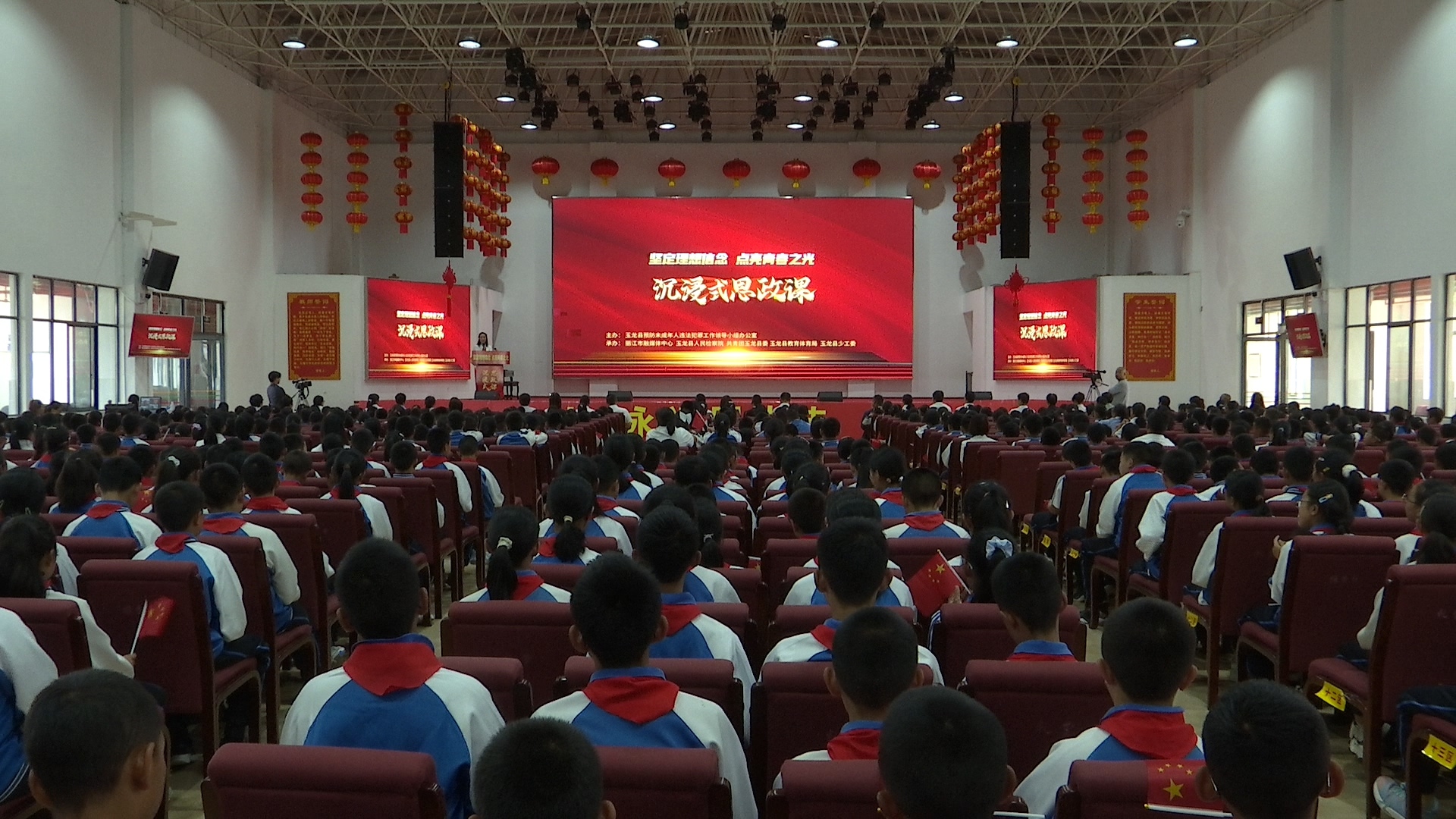 为深入学习贯彻习近平新时代中国特色社会主义思想和党的二十大精神,落实习近平总书记关于少年儿童工作的重要讲话,玉龙县人民检察院、共青团玉龙县委、玉龙县教育体育局联合丽江市融媒体中心共同组织了本次预防未成年人违法犯罪“沉浸式思政课”,做好全县青少年预防违法犯罪普法教育。县预防未成年人违法犯罪工作领导小组各成员单位分管负责同志及文笔学校师生700余名参加活动。