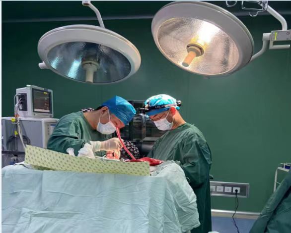 上海市杨浦区中心医院援滇医疗队葛岭主任和永胜县人民医院神经科马章辉主任共同为患者手术场景