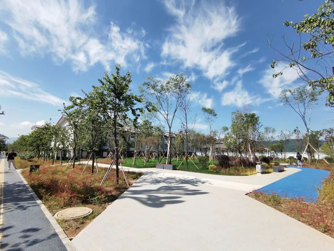 另外,针对香江路、祥和路、玉泉路等5条道路的人行道,参照绿道标准提质改造,以及对雪山路、香格里大道2条城市绿道增加标识标牌、驿站等基础配套设施。形成串联城区口袋公园、现状公园及绿地的绿道网络,使其不仅能满足群众的出行需求,同时还具备了一定的休闲、生态功能。
