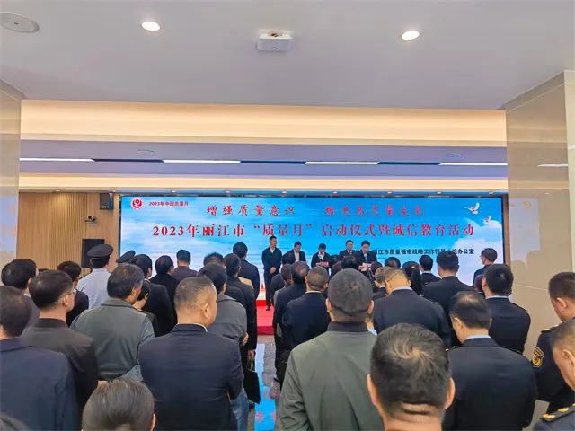 9月8日上午,2023年丽江市“质量月”启动仪式暨诚信教育活动在丽江市市场监督管理局举行。活动旨在认真贯彻落实质量强市战略,深入实施质量提升行动,加强质量文化建设,夯实质量基础设施,优化质量发展环境,增强质量第一的意识,不断提升质量总体水平,大力推进质量强市建设。