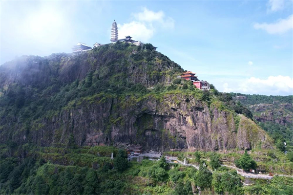 跟着徐霞客的足迹来到宾川,湛蓝的天空下,滚滚云流翻过山峰,金顶也若隐若现,亦幻亦真,云海仙境里的鸡足山清新且亮丽,美不胜收。