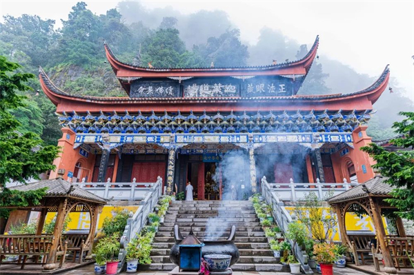 迦叶(jiāshè)殿坐落在鸡足山插屏山麓,天柱峰悬崖半腰。初名袈裟殿,古碣载:“周灵王七年(公元前565年), 牟尼佛出世,其传衣在此”故名。