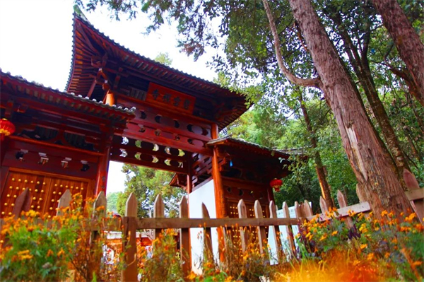 九莲寺坐落在鸡足山西支东面的山脚下,据山志记载,始建于明嘉靖初年,初为接待寺僧居静的地方。九莲寺环境清幽,高僧担当为其撰写两副楹联:一副是“数椽不厌居松顶,六月还须坐火边”,形象地描写出九莲寺的自然环境;另一副是“有所云,便是学人疑处;无不可,任随大德拈来”,表述了对禅的深刻见解和感悟。