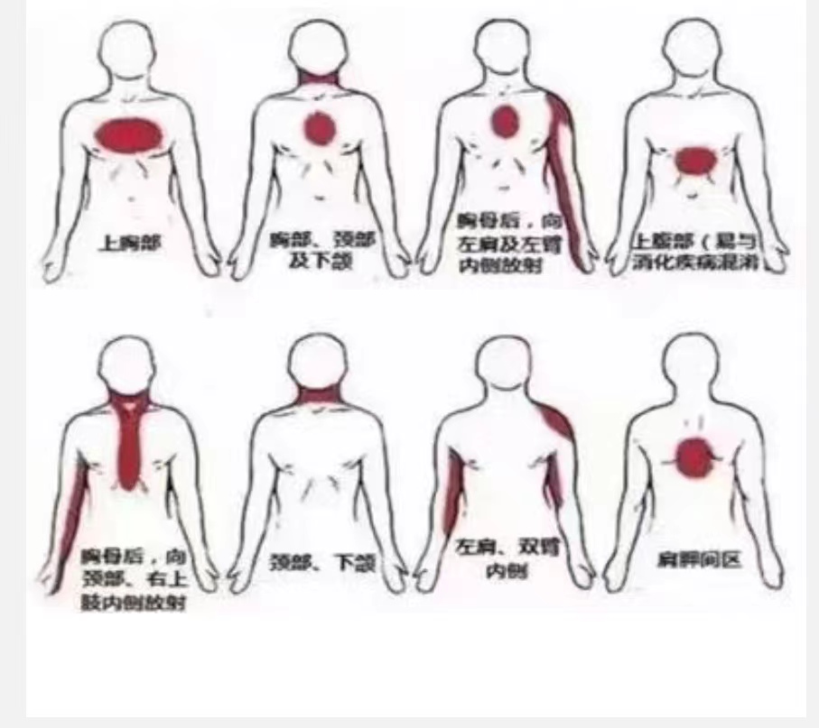 有些患者还会伴有胸闷、气短、周身乏力、恶心、呕吐等非典型症状,尤其是老年女性和糖尿病患者,严重者还可伴随周身异常改变。