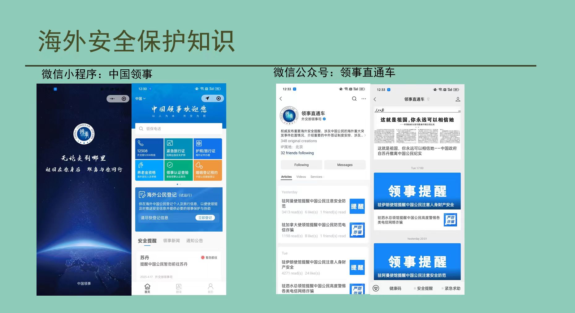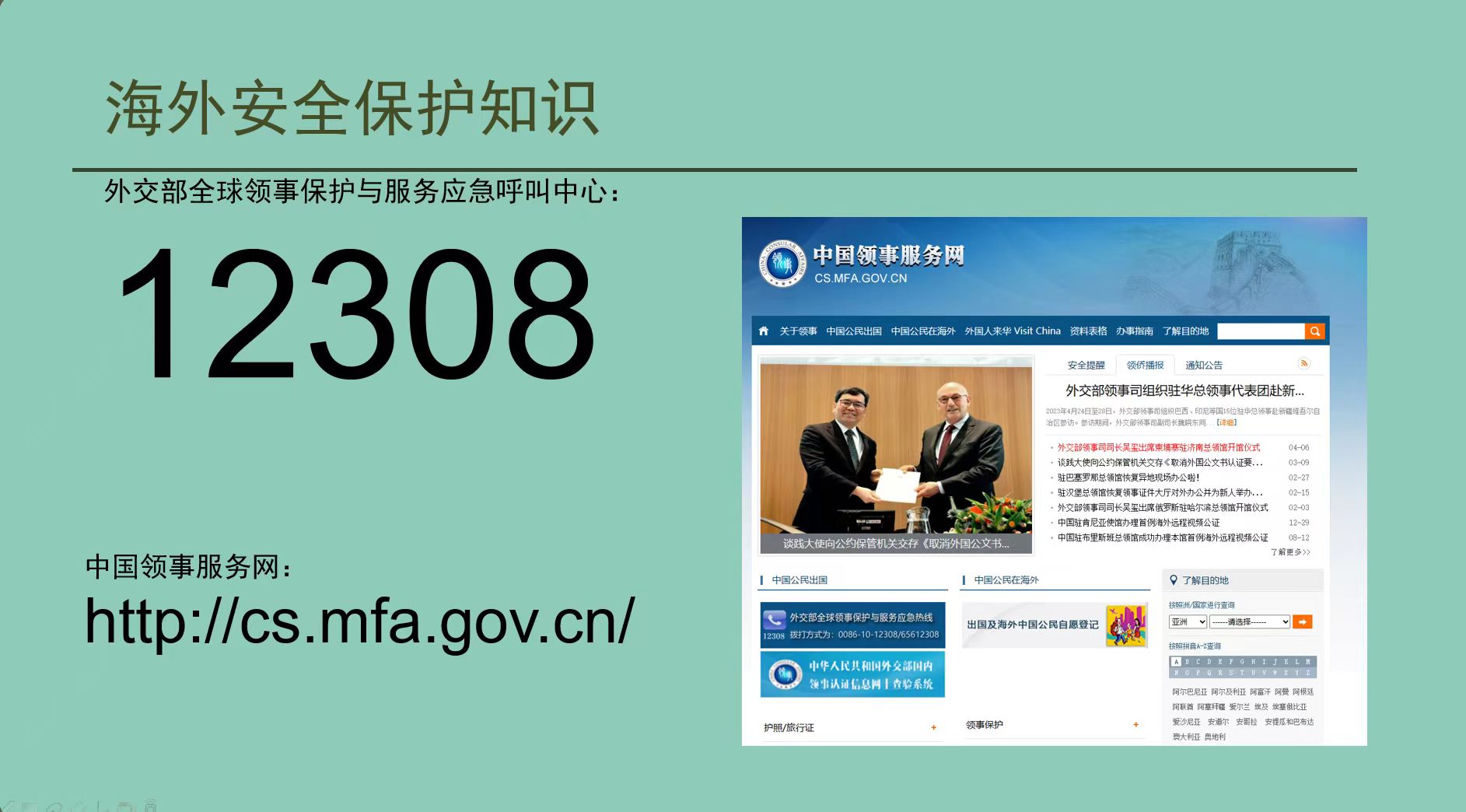 领事保护是中国政府和中国驻外外交、领事机构维护海外中国公民和机构安全及其正当权益的重要工作。