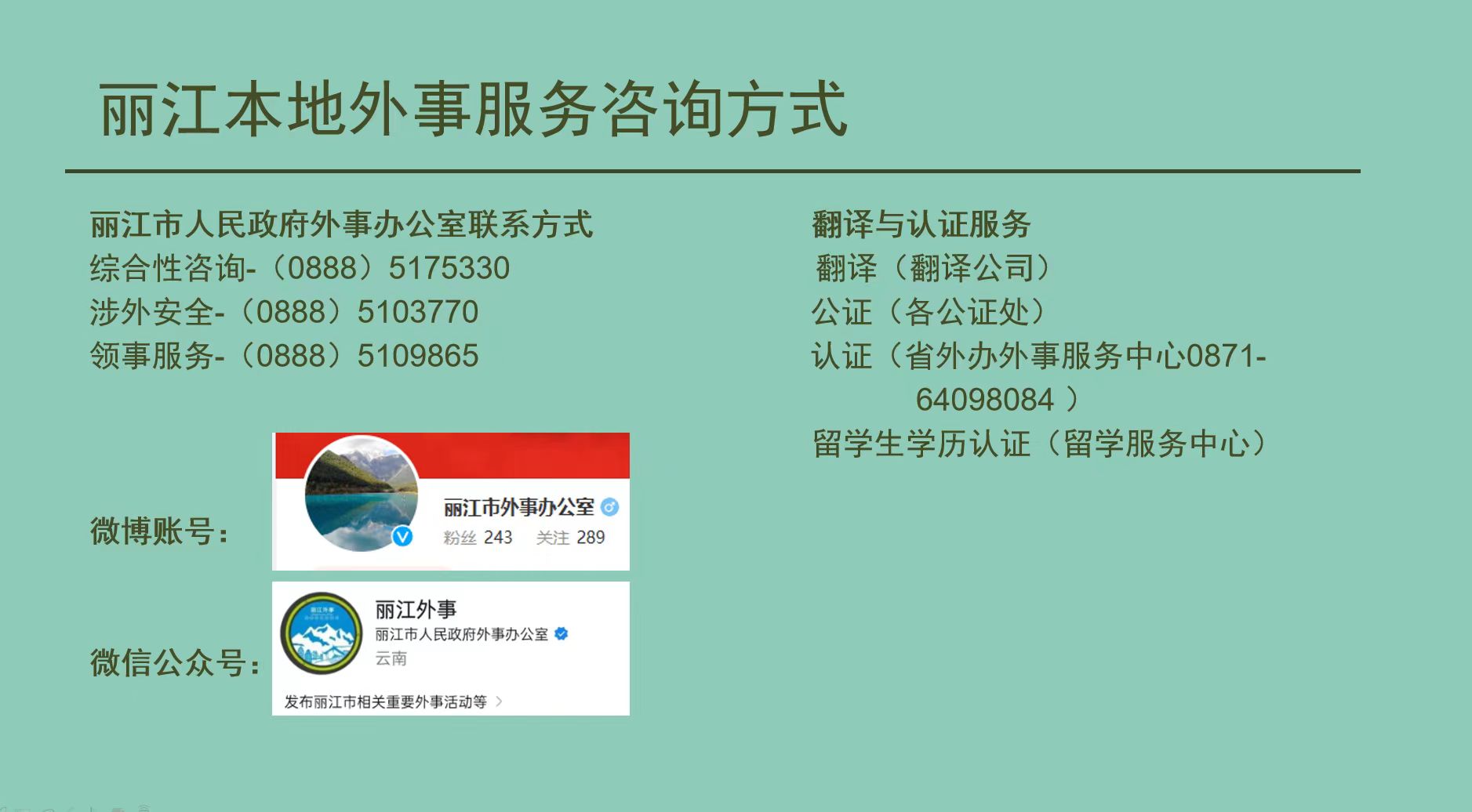 丽江市人民政府外事办公室将深入践行党中央“以人民为中心”的发展思想,坚决贯彻落实“外交为民”“外事为民”理念,携手有关单位进一步加强地方领保能力建设,全力以赴、依法依规为同胞提供领事保护和协助,于危难之际筑牢安全防线,在需要之时提供暖心服务,采取一切有力措施,织牢、织密出境居民“海外安全网”。同时,帮助大家掌握更多预防性领保知识及自救应急措施,助力广大丽江居民见微知著、未雨绸缪、平安出行、顺利回家。