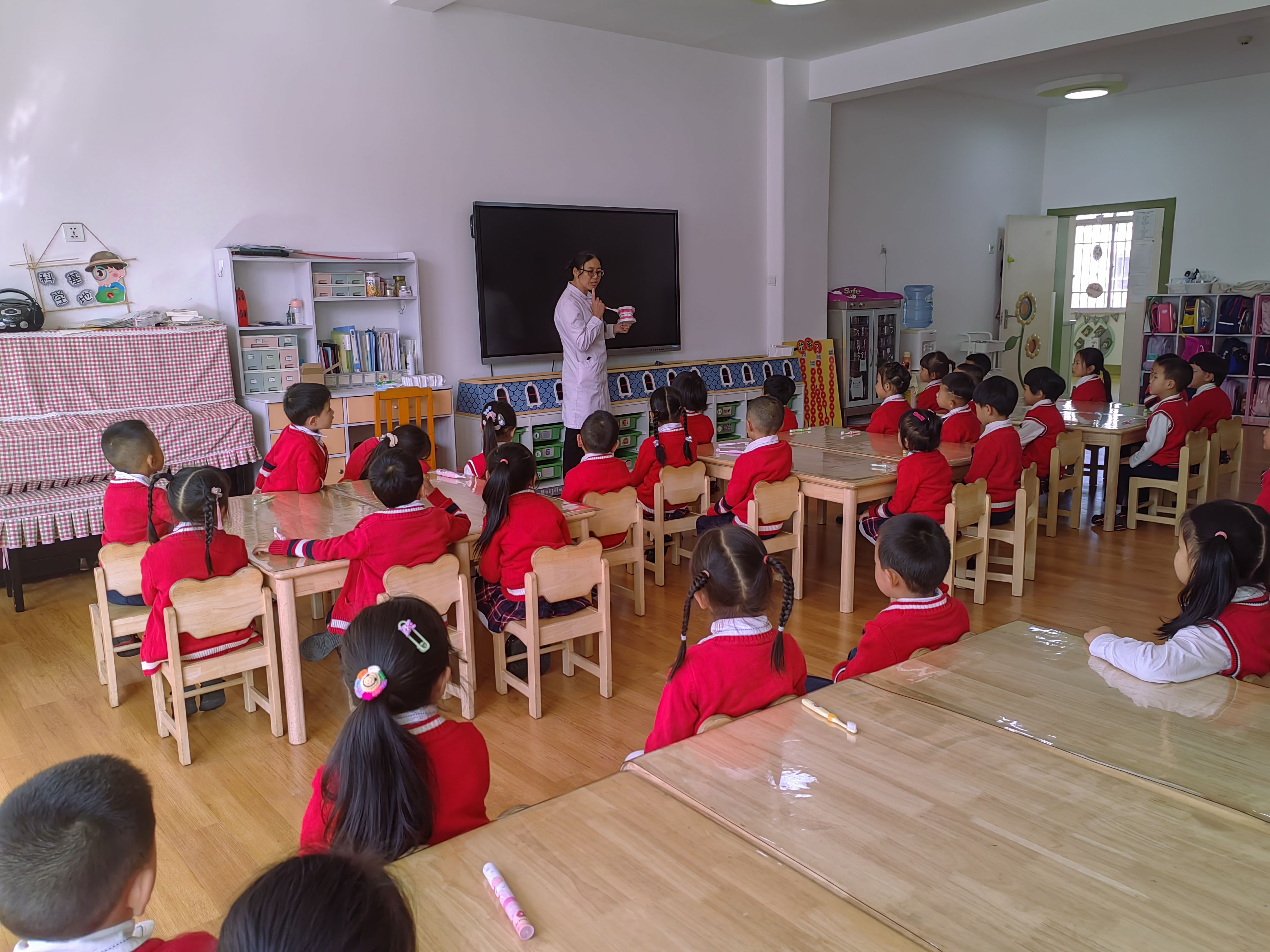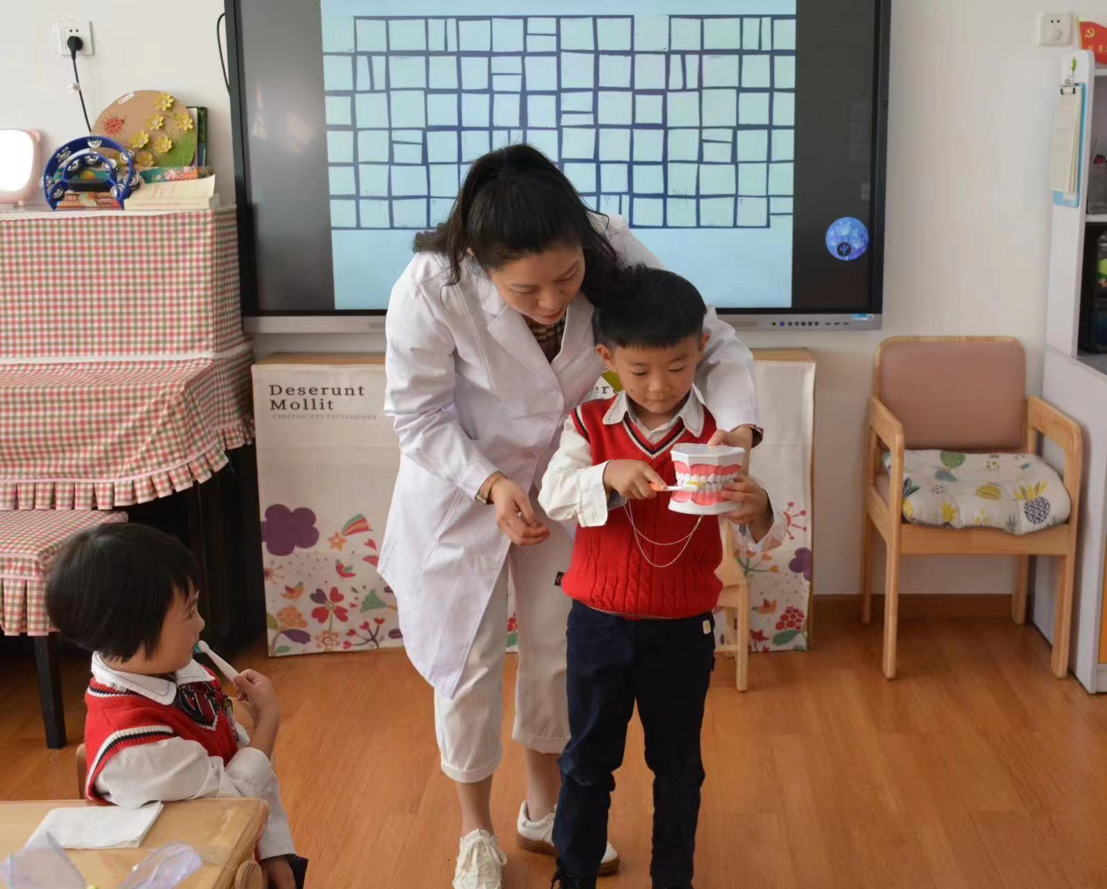 讲座结束后,医生们走进各班教室,通过互动交流的形式介绍了爱护牙齿的重要性以及保护牙齿的方法,引导孩子们正确清洁口腔,帮助孩子们养成良好生活卫生习惯。市幼儿园老师认为,此次口腔知识进幼儿园活动,增强了小朋友们口腔保健意识,在他们心中种下了“爱牙护牙”的种子。同时,呼吁全社会关心和参与牙病防治,营造“人人享有健康口腔”的氛围。