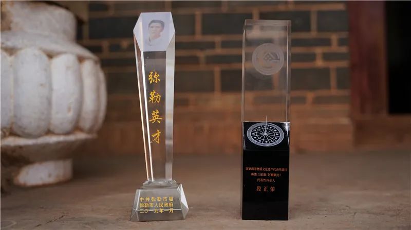 “阿细跳月大体就是‘哆米索米哆’这几个音,很容易感动人,在十一届三中全会之后频繁地走出弥勒。”而在阿细跳月的表演中,段正荣的技艺最为娴熟,也因此让他在阿细村寨中拥有了一定的知名度,成为在彝族群众中公认的“阿细跳月”代表性传承人。