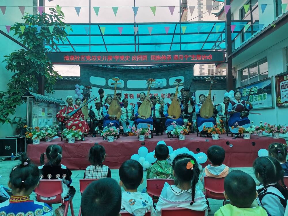 清溪社区现在有一支自己的纳西古乐队,成员多数来自清溪村的村民,2013年8月被授予国家非物质文化遗产《白沙细乐》传承点。近年来多次在由区委宣传部、区文旅局等多个人部门组织的演奏比赛中获奖。依托这样的传统文化,社区将以文化建设为抓手,提升社区文化品位,积极开展个性化、差别化的文化活动,精准施策、有效供给,真正地创造出符合时代发展要求、居民喜闻乐见的文化,调动起居民参与社区文化建设的积极性、主动性和创造性。本次活动中,纳西古乐队也为会广大市民和游客朋友们带来纳西古乐演奏《吉祥》。