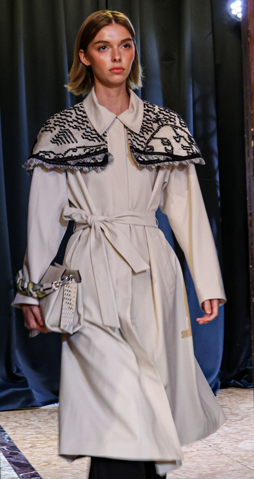 此次以模特走秀方式亮相米兰时装周的楚雄彝绣女装系列,在颜色上运用彝族崇尚的黑色,图案包括云纹、种子、马缨花与银饰等元素,将中国传统的彝族刺绣工艺与意大利面料相结合,展现了独特的中国民族风和东方美学魅力。