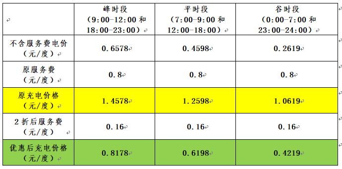 中秋国庆双节来临之际,丽江供电局为践行央企担当,落实为民办实事,大力推广提升电动汽车充电服务,倡导公众绿色低碳出行,推出“中秋国庆畅游丽江,南网充电全程无忧”充电促销活动,丽江供电局辖区内87个充电站,279个桩,381个枪全天充电服务费2折优惠,优惠后低谷时段价格低至0.4219 元/度。具体折扣详见下表:
