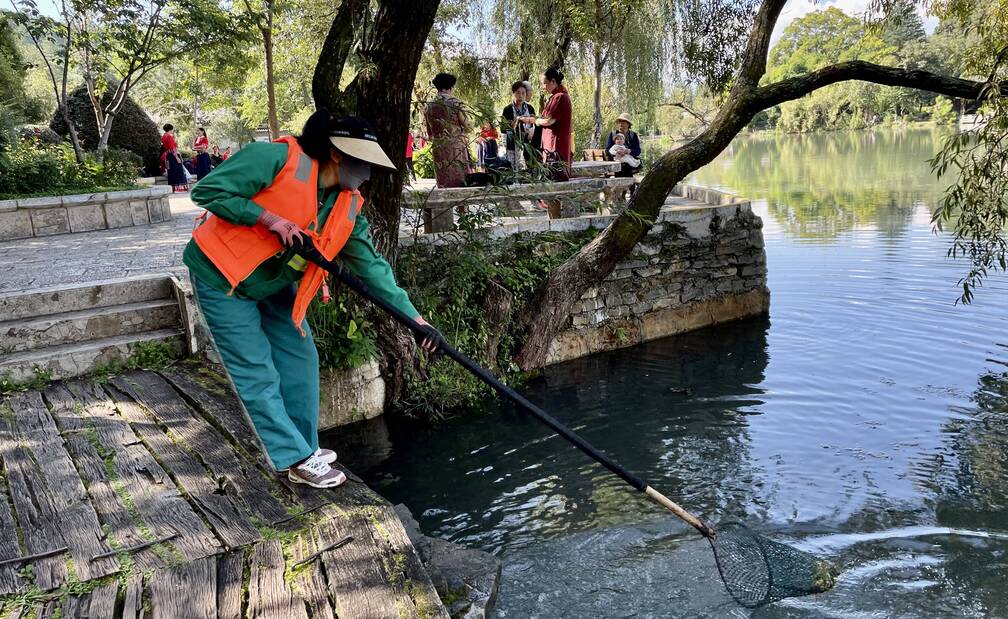黑龙潭公园坐落于象山脚下,相比较于丽江古城的纷繁热闹,峰峦叠嶂的玉龙雪山,黑龙潭公园的宁静闲雅多了一些生活中的韵味,显得尤为难得。随着小长假的到来,黑龙潭公园也吸引了不少的游客和市民朋友前来观光旅游。然而,客流在增加的同时,也给公园的环境带来了不小的压力,环境卫生、垃圾增多等问题也日益显著。