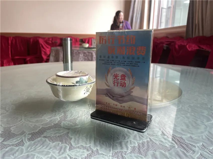 在安乐村和有兰经营的纳喜源农家乐里,餐桌上都摆放有“光盘行动”的宣传提示牌,“这几年大家对反对浪费、节约粮食也有了很多认识, 很多来做客的人对剩菜也会进行打包。”