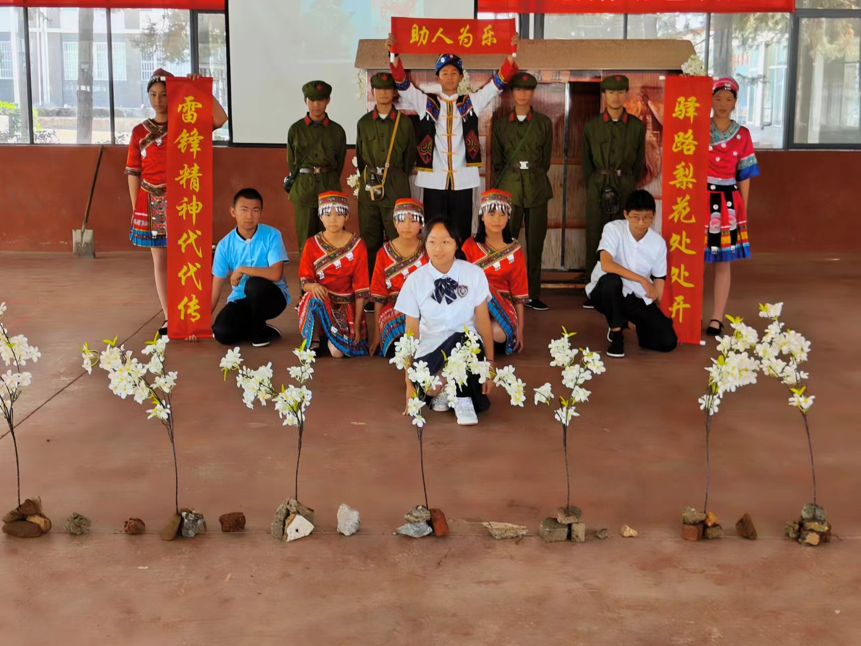 本次选则《驿路梨花》这个剧目,一是为了铸牢中华民族共同体意识,发挥学校教书育人的作用和课本剧寓教于乐的作用,增强对中华民族优秀文化的认同感和归属感;二是为了通过剧本的表演,宣传雷锋精神,加深同学们对雷锋精神的认识和理解,促使学生主动学习雷锋精神;三是通过老师、同学共同准备剧目,精心制作道具,不仅在课本剧中,更在课本剧的准备工作中参与实践,体验和学习艰苦朴素的精神,增强学生的动手操作能力。