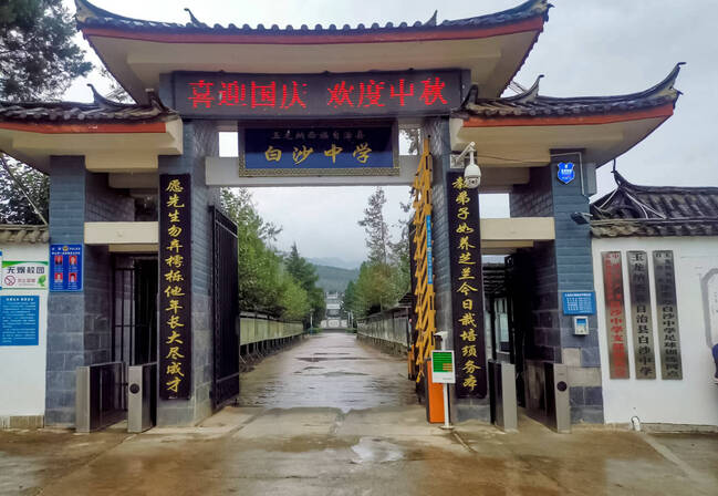2018年7月中央民族大学附中丽江实验学校借驻玉龙县白沙中学办学,白沙中学停止招生。2021年九月,在各级人民政府,玉龙县教育体育局的大力支持和县域教育资源整合背景下,白沙中学恢复办学,2023年9月改制为九年一贯制学校。截至目前,全校共有教职工111人,其中专任教师106人、工勤人员5人、24个教学班,在校学生初中750人,小学345人。