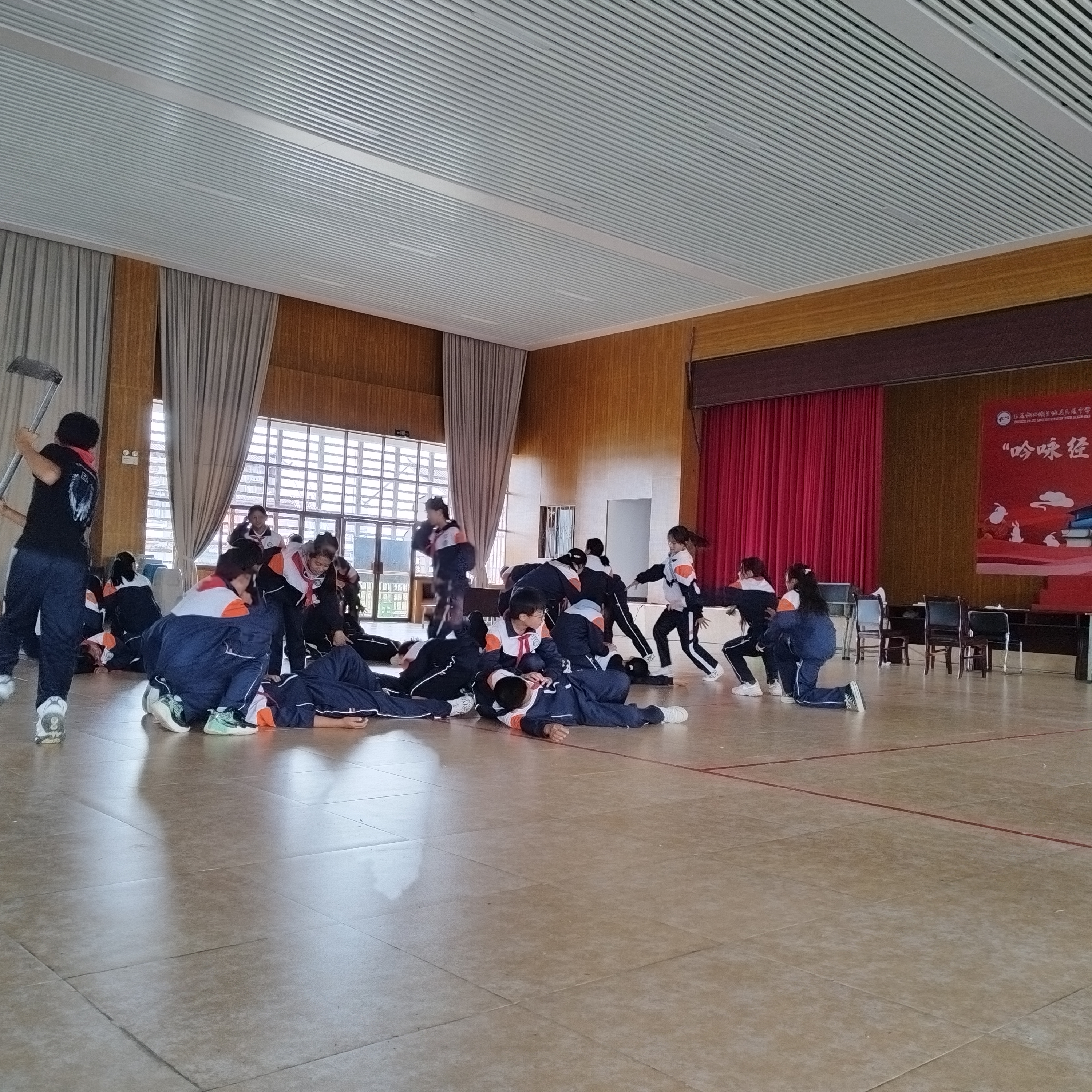 舞台上,同学们让剧中的人物栩栩如生