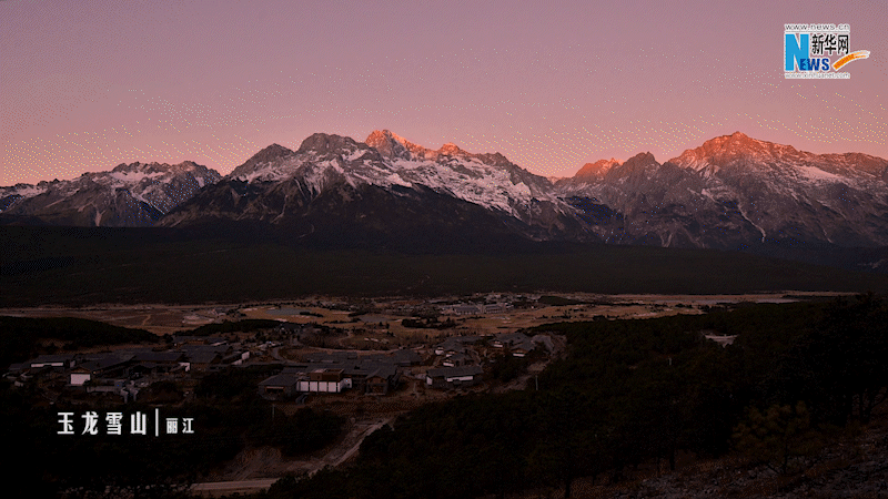 日出时,玉龙雪山被逐渐点亮,身披金光