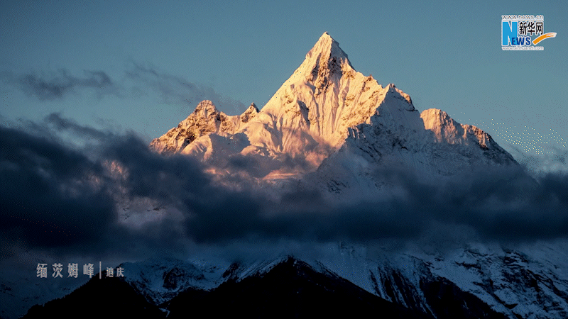 梅里雪山沐浴在金光下熠熠发光