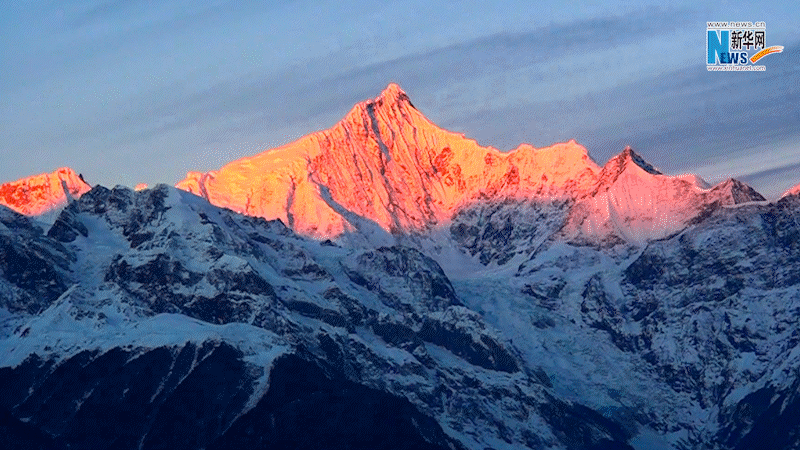 巴拉格宗金光爬上雪山顶的一刻