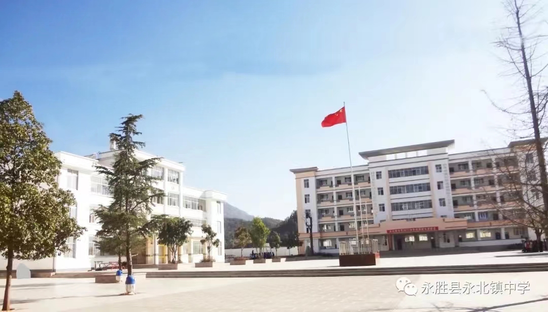 永胜县永北镇中学位于永胜县城东部,灵源南路中段。学校有44个教学班,在校学生2163人,教职工169人,是永胜县目前办学规模最大的初级中学。永北镇中学在抓好教育教学常规管理的基础上,还在课余开展各种形式的活动,丰富同学们的课余生活,减轻学生学习压力。永北镇中学立足于学生素养发展和教师专业发展的双视角,开全开足课程体系。让丰富多样的课程植根于课堂,让真实经历和体验伴随学生的成长,让综合素养评价推动学生全面健康发展。