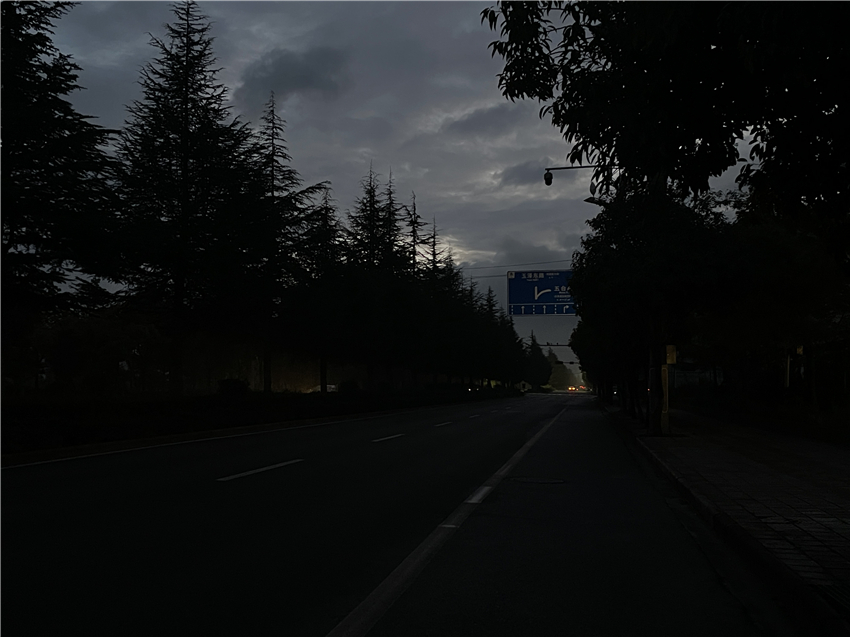 早上6点30分,记者来到了东西横贯古城区和玉龙县之间的玉泽路。根据记者观察,在6点40分以后,玉泽路的路灯已经全部关闭,道路和周围环境进入一片漆黑。而就在这一时间段里,玉泽路上来往的车辆逐渐增多,货车、卡车也不少,整条路只剩行驶在路上的车辆的车灯带来光亮。少了路灯的照明,无疑给往来的司机和行人增加了很多危险的几率。