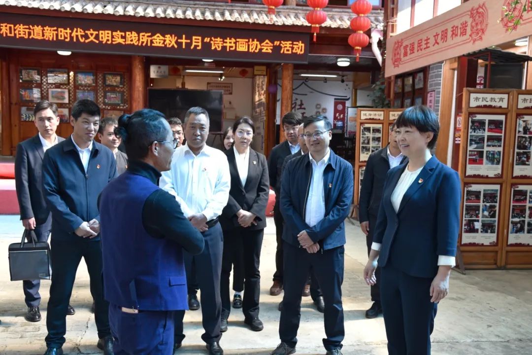10月18日,市委书记浦虹参加市委办公室党总支第一支部主题党日活动。图为浦虹在古城区祥和街道新时代文明实践所调研。(丽江融媒记者 和丽勇 摄)