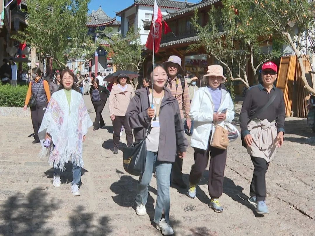 赵鑫在带团。(丽江融媒记者 戴汝杰 摄)