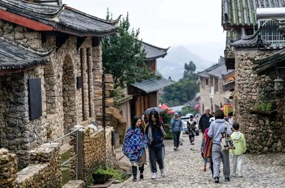 游客在丽江市玉龙县白沙镇玉湖村观光游览。(图源 新华社)