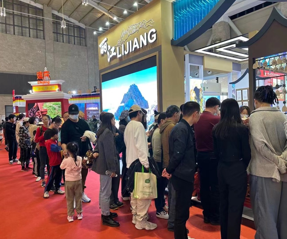 丽江展馆位于昆明滇池国际会展中心7号馆,以“舍不得的丽江”为主题,以“此时此刻”为创意,展位面积为240㎡。现场东巴书写、生肖拓印体验等活动,让参观者近距离感受世界记忆遗产的魅力。舞台上不同民族文化节目缤纷演绎,将“最丽江”的文化原汁原味呈现,涵盖丰富多彩的丽江多元民族文化,动静相宜、琳琅满目。在展品层面,从全市甄选丽江云天工、骏宇文创、白沙锦绣苑、丽永瓷、彩银之蓝、布农铃等12家具有代表性的参展单位。
