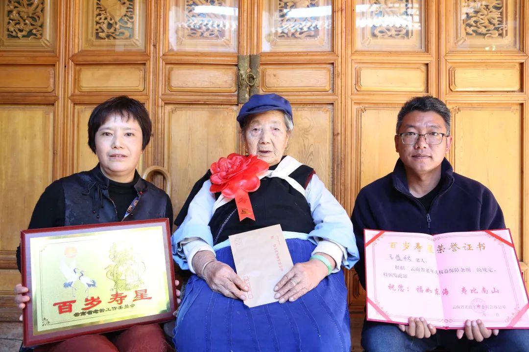 随后,大家来到束河街道龙泉社区仁里村王益秋老人家中,见到慰问人员,王益秋老人显得格外开心。在仔细询问老人家的生活起居及身体状况后,区老龄委工作人员为今年正满100岁的王益秋老人送上牌匾、证书和慰问金。虽然已有百岁高龄,但王益秋老人依然面色红润、神采奕奕。临走时,大家叮嘱老人要保持良好心态,保重身体,并嘱咐其家属耐心照料,让老人安度晚年。