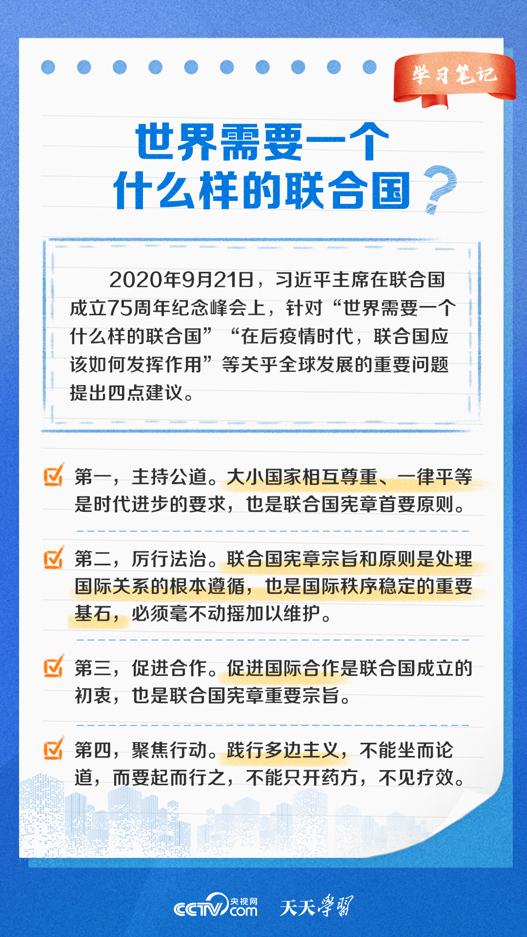 天天学习1945年10月24日,《联合国宪章》正式生效,联合国宣告成立,为国际关系发展开启了新篇章。作为世界上最具普遍性、代表性、权威性的政府间国际组织,联合国坚持推进多边主义,为维护世界和平、促进共同发展发挥了不可替代的作用。