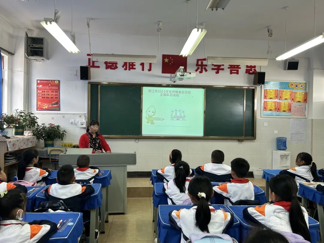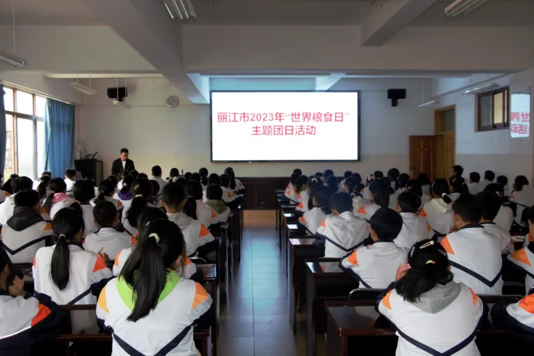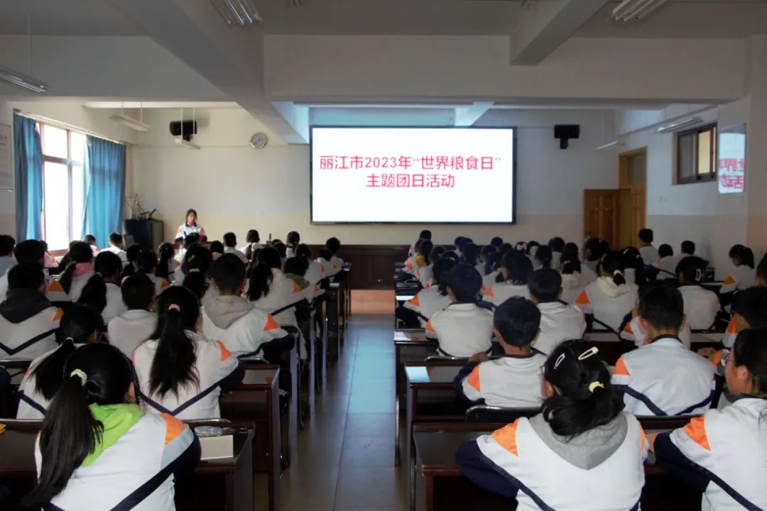 为了深入学习贯彻党的二十大精神,全方位夯实粮食安全根基,让同学们知道节约粮食的重要性,让大家自觉养成节约粮食的好习惯,响应“水是生命之源,水是粮食之本,不让任何人掉队。”世界粮食日的主题,在第43个世界粮食日,共青团丽江市委、玉龙团县委在玉龙中学开展主题团日、主题队日活动。