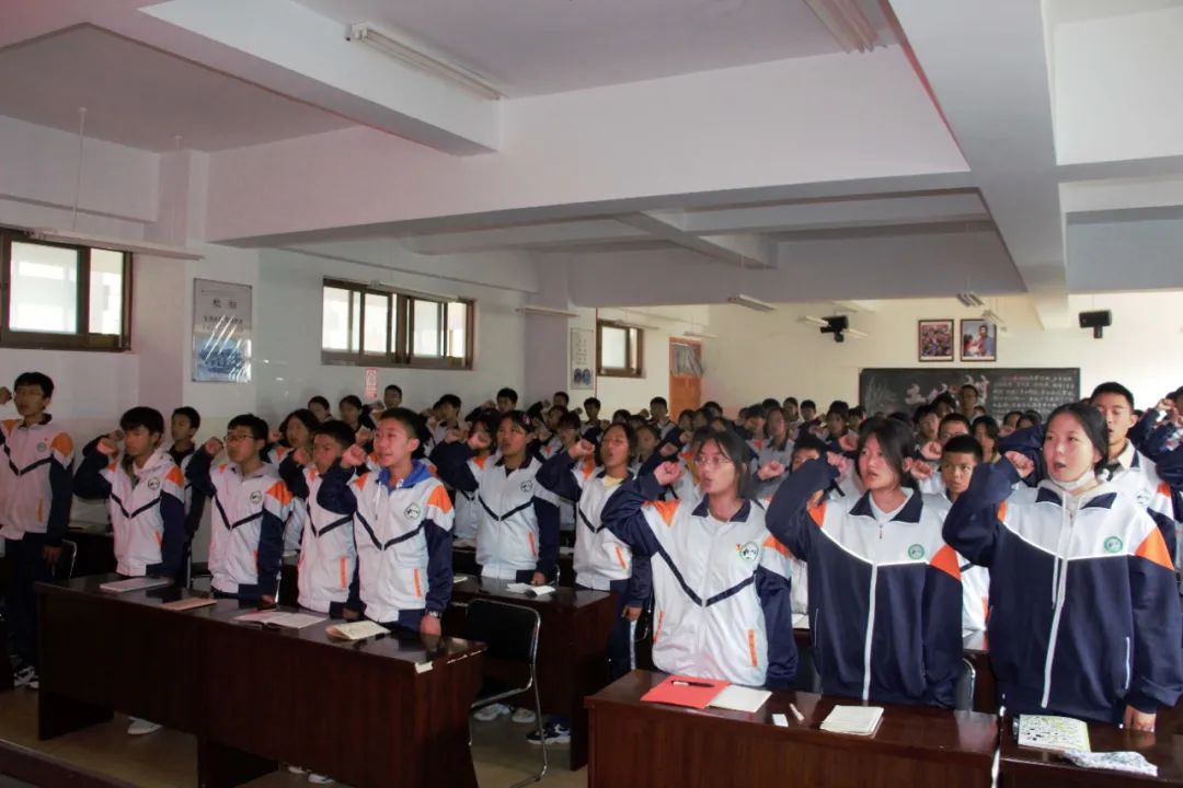 活动最后,在玉龙中学团委书记蔺金的带领下,全体团员青年举起右拳重温入团誓词,有力的宣誓让同学们重温入团初心,激发作为共青团员的光荣感和责任感,督促青年时刻牢记初心使命,引导青年凝心聚力、砥砺奋进。