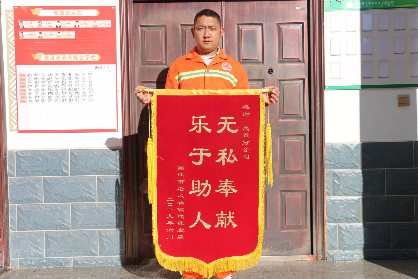 2019年6月,正在填埋场和同事们一起工作的杨丽友看到了几个慌慌张张的人,一见到杨丽友就马上请求他的帮助。原来,他们是珠宝店的工作人员,因失误把价值1.8万元的珠宝倒进了垃圾车里,他们是跟着垃圾车一路找来的。要知道,丽江城区一天的生活垃圾有几十车,成百吨,那一刻早已堆成了一座小山,要从这样一座小山里找出那个小小的首饰,难度可想而知。更别说烈日下的填埋场无遮无挡,发酵的垃圾酸臭和酷热的体温都让搜寻的难度增大了不少。然而杨丽友和他的同事们没有犹豫,立马就一头扎进了场地,分工协作开展搜寻。