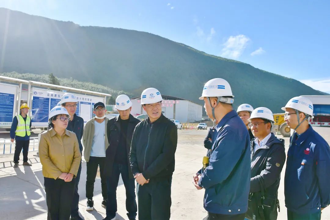 11月2日,和春雷一行在古宁高速大猎村隧道项目点听取情况介绍。(丽江融媒记者 和丽芬 摄)