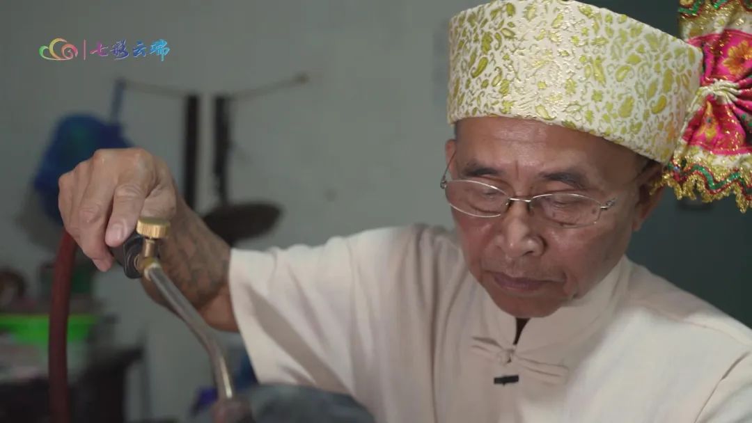 岩宰龙,是傣族银饰锻造技艺的州级传承人,与银器相伴已经足足五十年。