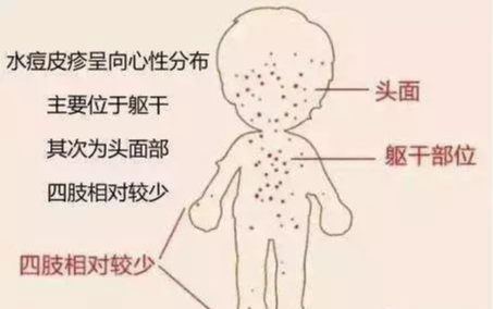 典型的皮疹特点是“向心性分布”,即前胸、后背先出,分布较密集,然后向头面部蔓延,四肢少一些。