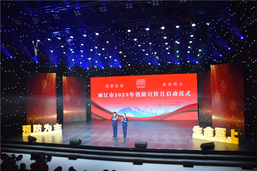 启动仪式上,大家通过短片回顾了五年以来丽江消防救援队伍的荣耀时刻,发布丽江消防原创歌曲《守护》,对2023年丽江市“优秀消防志愿者团队”和“优秀消防志愿者”颁发了牌匾和证书。“七一勋章”获得者、丽江华坪女子高级中学校长张桂梅通过镜头为消防指战员送上祝福。